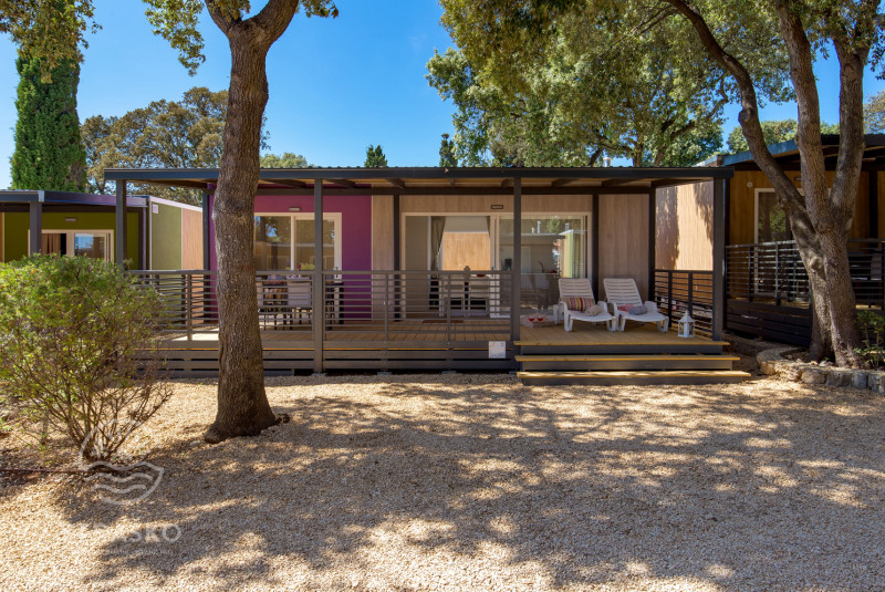 - MH 4+2 MEDITERAN: 34,4 m2, 2 spalnici, dnevni prostor s kuhinjsko nišo, 2 kopalnici (prha/WC). Največ 4 odrasli in 1 otrok do 12 let (ali 5 odraslih – 5. odrasla oseba doplačilo). Nahajajo se 150-200 m od morja. Letnik, informativno: prib. 2017. *Gostje hišic Mediteran ne morejo uporabljati bazenov pri hišicah Mediteran Superior.