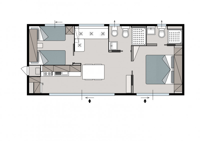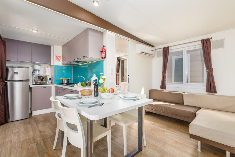 MH 4+1 PREMIUM: 34,4 m2; 2 spalnici, dnevni prostor s kuhinjsko nišo, 2 kopalnici (prha/WC). Največ 4 odrasli in 1 otroka do 12 let. Nahajajo se v bližini otroškega igrišča, 50-100 m od morja. Letnik, informativno: 2021-2022. - MH 4+1 ADRIA: 34,4 m2; 2 spalnici, dnevni prostor s kuhinjsko nišo, 2 kopalnici (prha/WC). Največ 4 odrasli in 1 otrok do 12 let. Nahajajo se v bližini bazenskega kompleksa, animacije ter športnih terenov, 50-100 m od morja. Letnik, informativno: 2021-2022.
