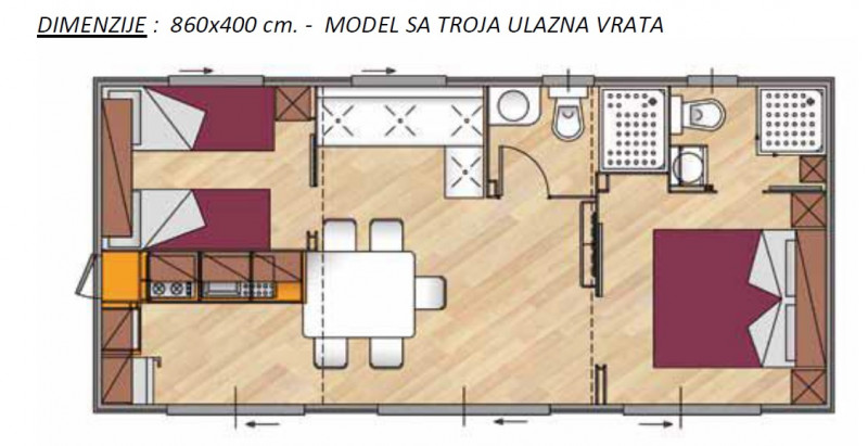 OPOMBA: mobilne hišice istega tipa so lahko na voljo v več različicah (različna barva opreme, razporeditev, letnik..).