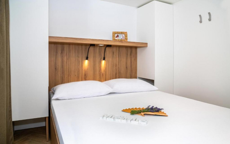 Mobile home Relax 6+2 (3rd/4th line from the beach): prib. 40 m2; 3 spalnice (ena z zakonsko posteljo, drugi dve z ločenima ležiščema), kuhinjska niša (pomivalni stroj) in dnevni prostor s kotnim kavčem 130x195 cm, 2 kopalnici (prha/WC). Nahajajo se v 3. In 4. vrsti od morja.