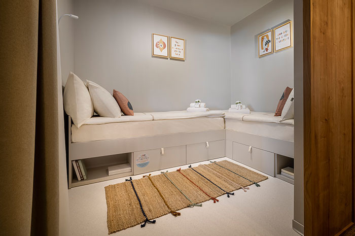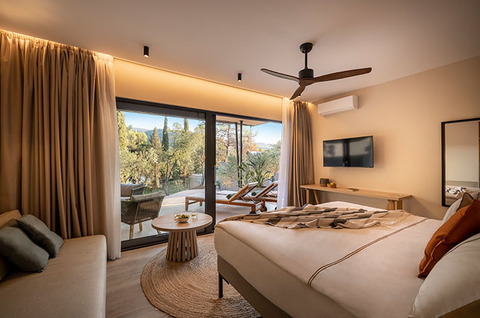 Family Suite 2+3: prib. 40 m2, dnevna soba z raztegljivim kavčem, otroška soba z dvema posteljama, spalnica z zakonsko posteljo, lounge terasa.