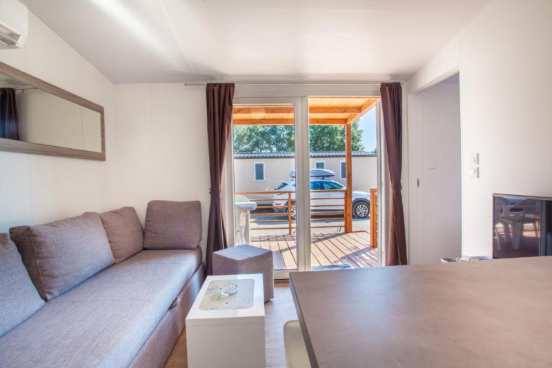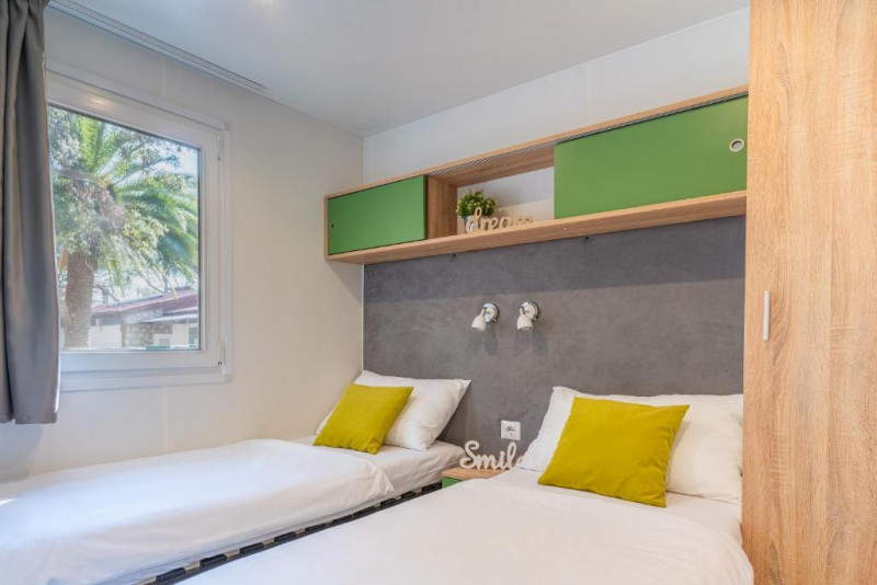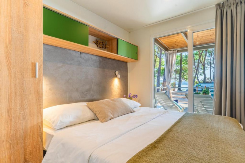 - MH 4+2 SUPERIOR: 34 m2 + terasa 22 m2, 2 spalnici (ena s francosko posteljo, druga z ločenimi ležišči), 2 kopalnici (prha/WC), kuhinja in dnevni prostor z raztegljivim ležiščem. Največ 4 odrasli in 2 otroka do 12 let.