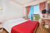 SOBE: 211 sob: klima, SAT TV, kopalnica (prha/WC), sušilnik za lase. Hladilnik na vprašanje (doplačilo). Dodatno ležišče enosed (180×68 cm). V sobah 2+1 možnost bivanja 2 odraslih in 2 otrok – v tem primeru en otrok spi s starši in reklamacije na udobje niso možne. V družinski sobi 2+2 je kot dodano ležišče kavč (190×115 cm; primerno za največ dva otroka).