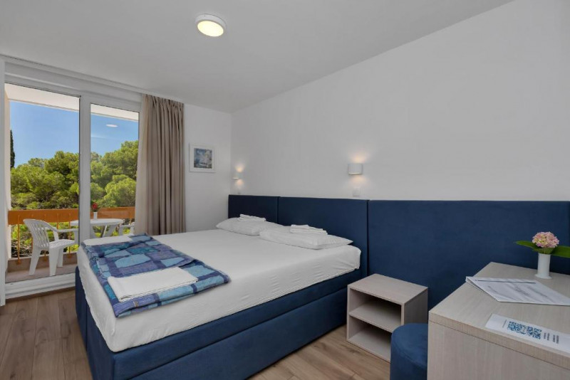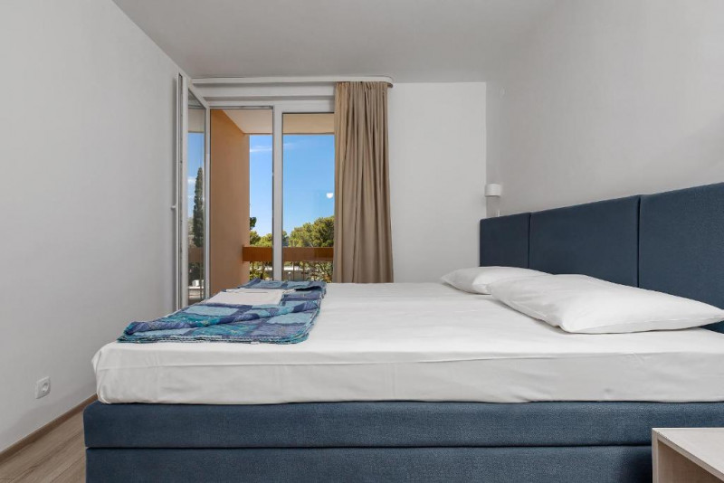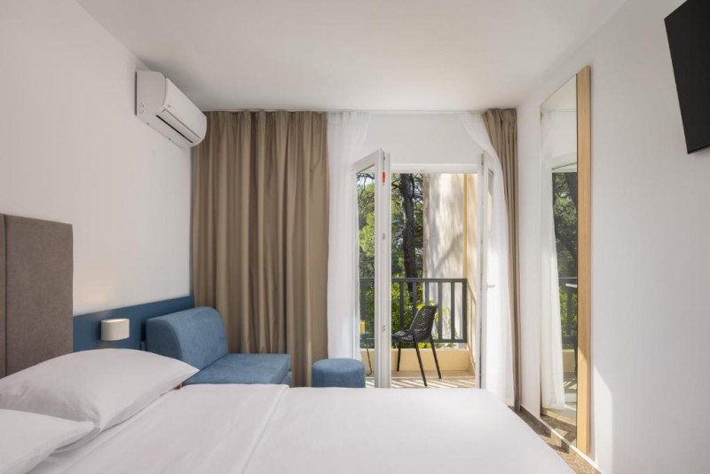 SOBE (DEPANDANSE): 198 sob, klima, SAT TV, mini bar, kopalnica (prha/WC), balkon. Sobe v depandansah popolnoma prenovljene 2026.